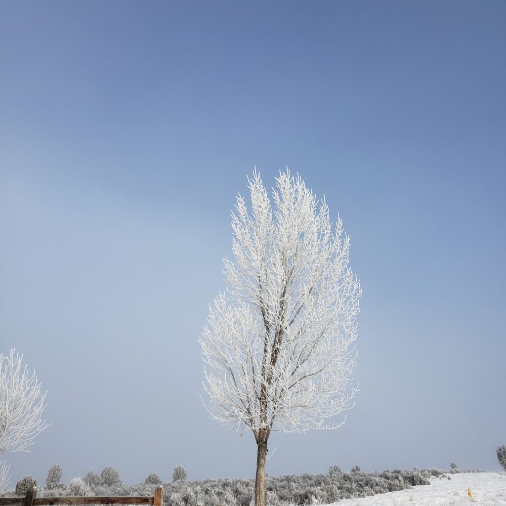 Here’s a big buck in the front yard, we see him often, and a frosty tree from yesterday morning, enjoy.