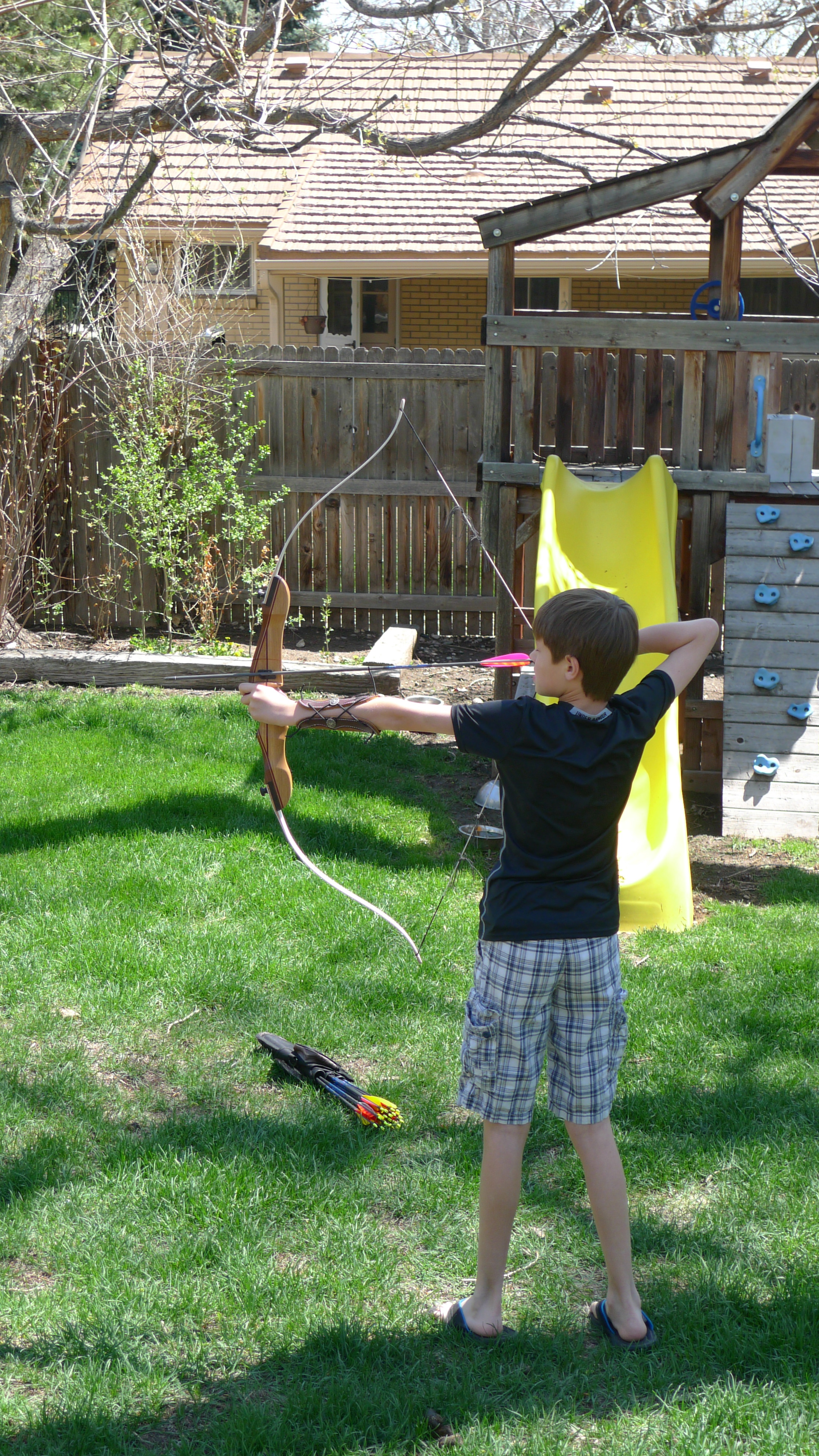 After planting we stopped by the nursery one more time to pick up a couple of blueberry plants and three small geraniums for our house.  I planted in the front yard and the boys shot their bows and arrows in the backyard.  I still need to find new pots for my front porch that are tall and black…not so easy to find.