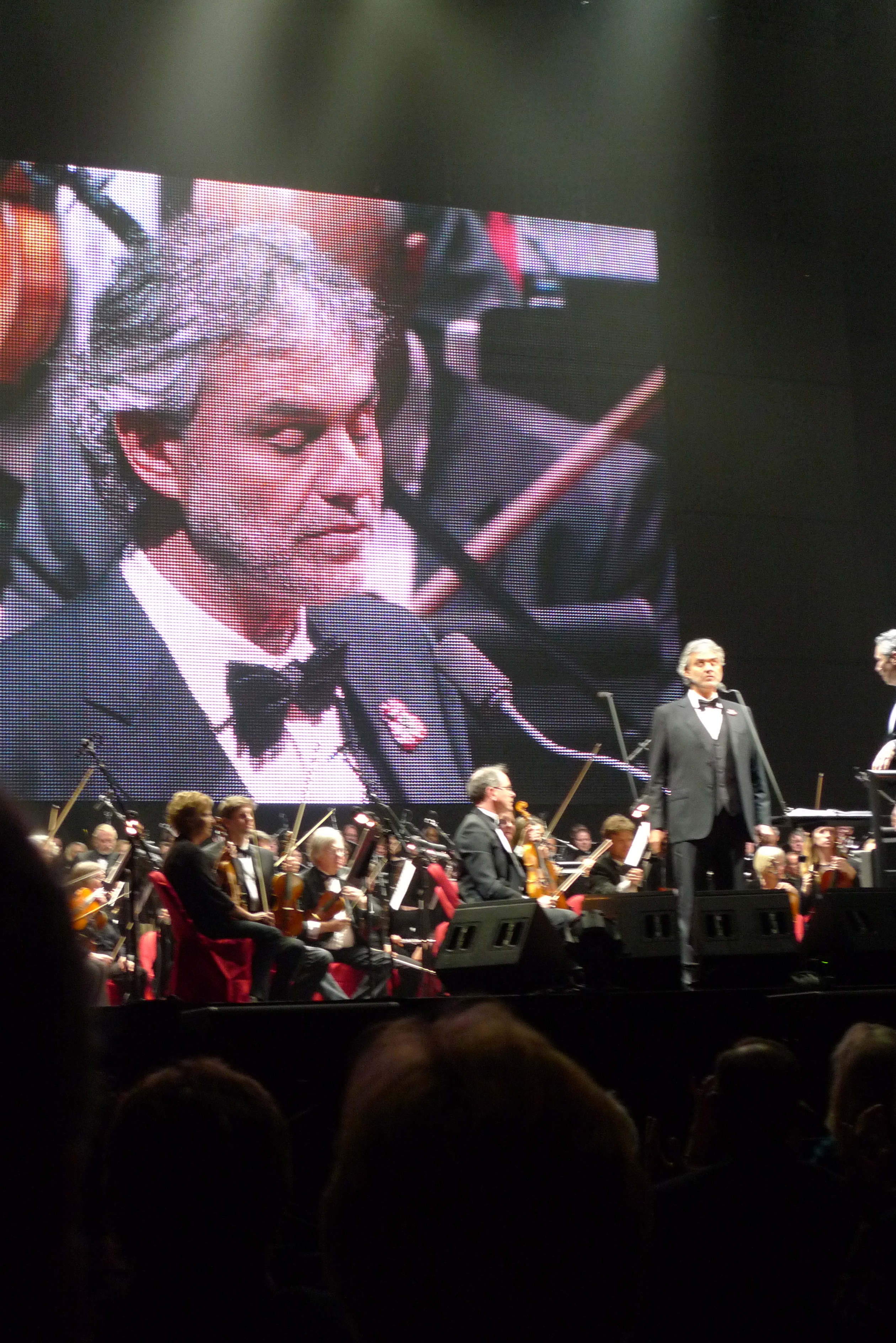 Anyhow as luck would have it, one of my guests was one of my doctors from my knee surgery in Vail so I told Veronica we’d cut short our pre show party and head right over to the arena. We pulled in through security to our backstage parking spot and went in the back and headed right over to Andrea’s dressing room. Heidi (my doctor from Vail) and I went straight to look at Mattea’s foot while Jag and Mom stood there listening and watching Andrea warm up for the show. After checking it out and calling her cousin (who’s a top dermatologist) we had him all fixed up. By this time our friend Pete (who’s the road manager) showed up with our backstage passes so the oldest and I walked around between all the hustle and bustle backstage including the Colorado Symphony and other people. It was filling up fast out front so I told him we needed to go out and find where our 20 guests were sitting. We found most people and said a quick hello before the show started. He liked being backstage and of course Alberto and Cinzia were treating him like one of their own children. Veronica tracked me down with her 1 year old in her arms to thanks me for bringing a doctor so quickly. As I said, it was just lucky Heidi came with us. She asked me if she could call me from Los Angeles if she had any issues and of course I said “of course”.