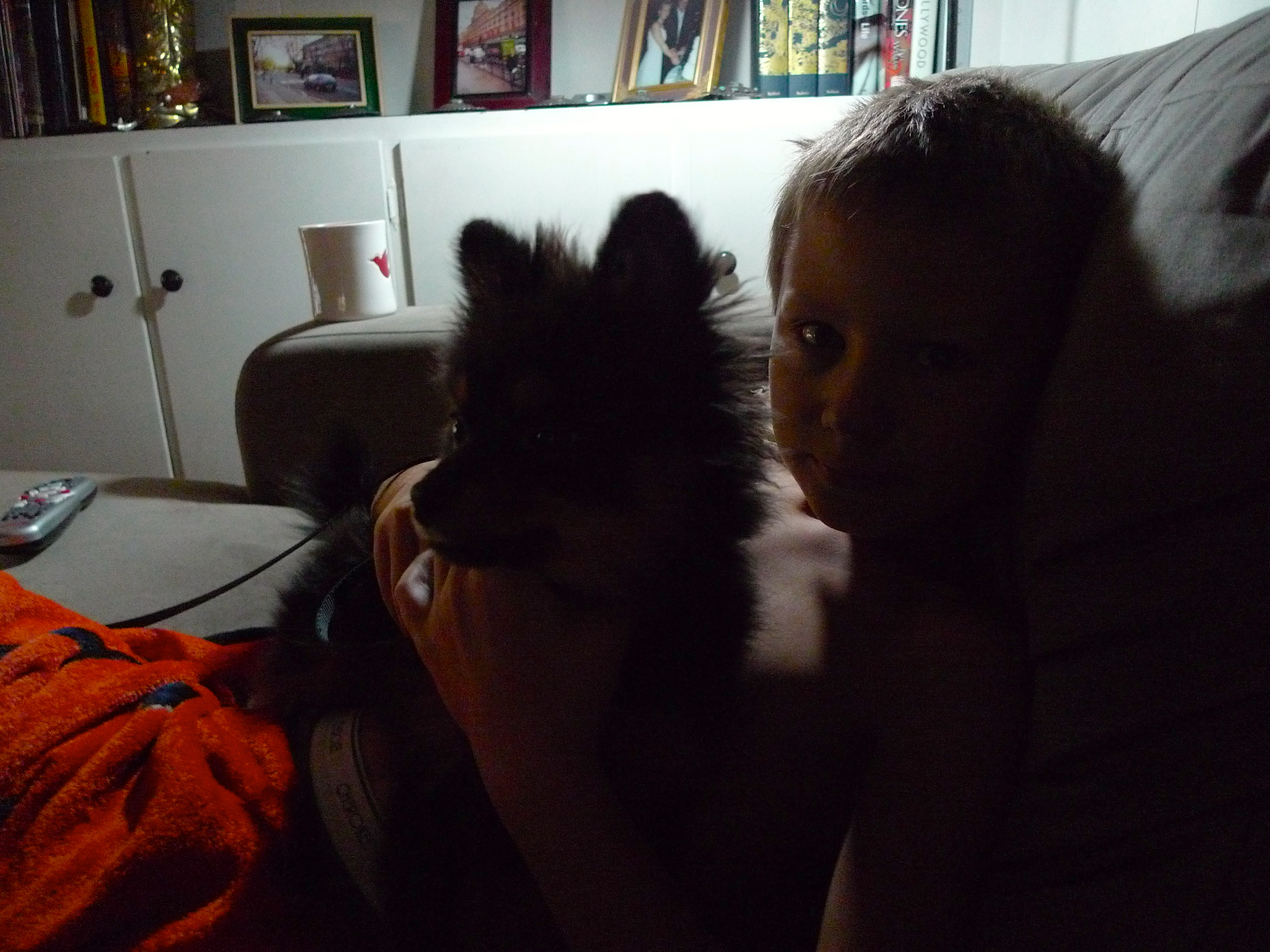 It was a busy day, I was in northern Colorado until around 1 and then the car was delivered, we all went to school to meet our new teachers and classmates and then Peggy, Helen (her friend) and Teddy arrived. Teddy is a 2 pound (or less) 17 week old pomeranian miniature husky mix puppy! Peggy called when she picked up Helen not knowing she had a new puppy that was coming. I said, Â “oh well, what can we do, come on down”. The dog is more like a new baby! We weren’t sure how our dogs would react but all’s well. We did keep Mojo away but Teddy, Lacey and the boys played and played all night long. Helen is very nice and comes from Long Island but has lived in Aspen for about 11 years. She’s the misses age and single and looking (as all these girls are) and it so happens we called Bo, our friend from Colorado Springs, who lands at the Denver airport today at 11:15am , so he’ll join us for lunch! This is too funny as he’s always bugging Lori for her to fix him up with a friend, you never know.
