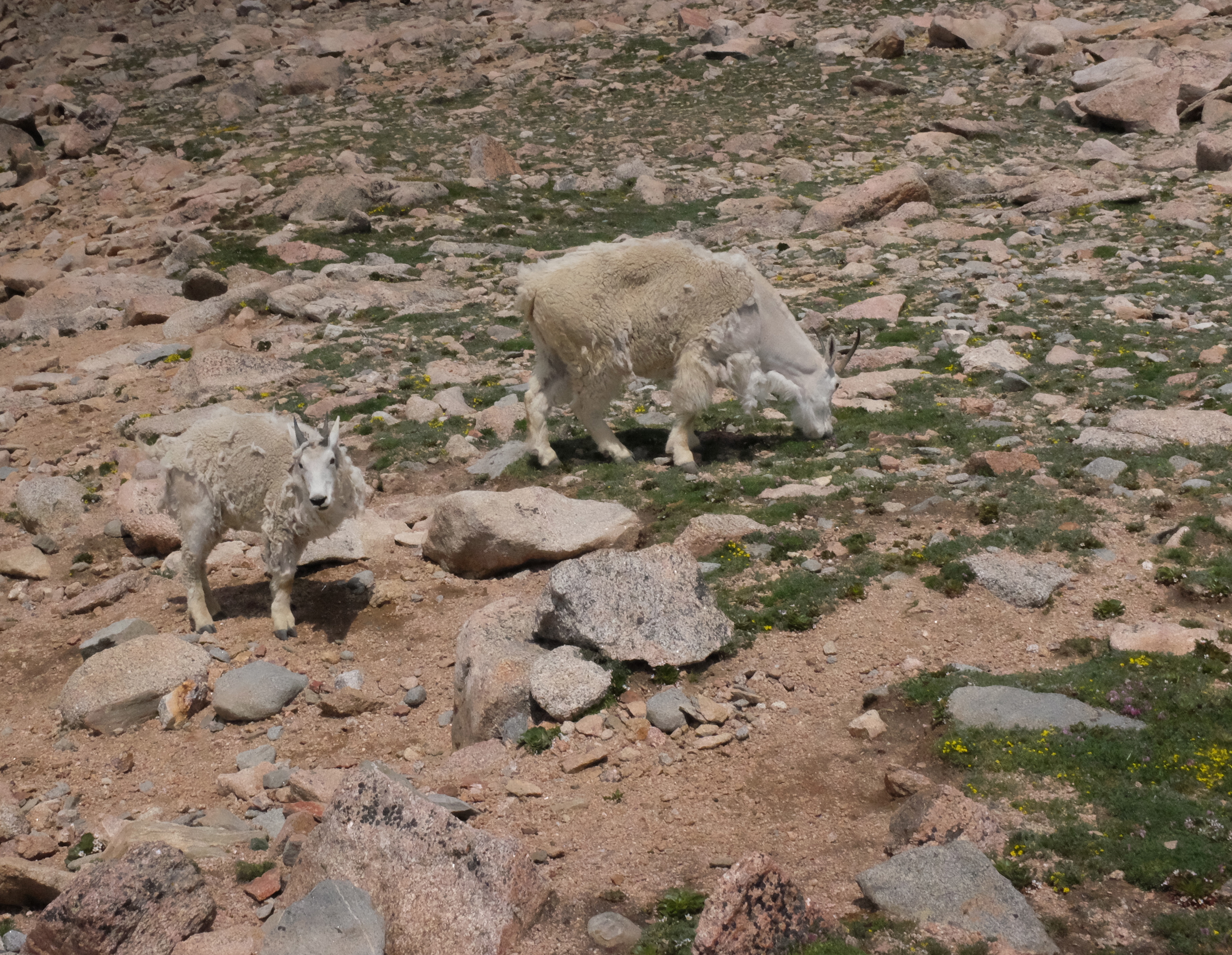 Yesterday, we climbed our first 14’er (a mountain over 14,000 feet tall) as a family. We made it up to Summit Lake by 10:30 or so and were at the summit of Mt Evans by noon. The views were spectacular and just driving up there was pretty scary as you’re so high up and one wrong move and you’d drop thousands of feet off the side. It was hazy until we were at the top as the smoke from the wildfires in Washington State are now in Colorado. When we were on top though, we were above it but you could see the blanket of smoke that you’d just come through. We ran into mountain goats and bighorn sheep along the way. Lori will post some pictures. You can click on pictures to make them larger! We then headed down the mountain for home and arrived mid afternoon. Mt Evans is about an hour drive or so from our house without traffic.