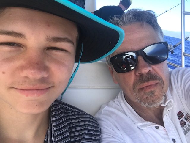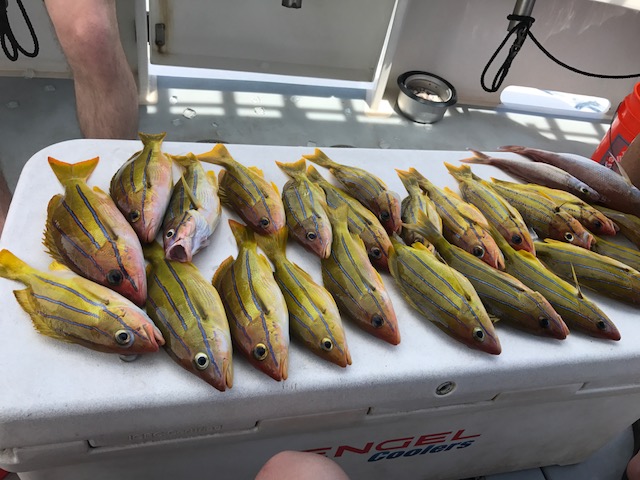We made it to the marina by about 6:30. My buddy Jeff, who I’ve known for almost 40 years, met us there 15 minutes later. He came along fishing with Jag and I. The boat pulled out around 7:15am with the three of us and a young couple who were just married and another couple and their 12 year old adopted son. (we could tell he was adopted as he was Chinese). In about 45 minutes we were out a ways in the ocean all rigging up our lines getting ready to drop them to the bottom and then crank the reels up 3 times. Jag caught the first fish and ended up catching the most which was great. It was hot and a little choppy. We cruised around from spot to spot and all caught our limit. Below is a picture of some of our fish. These are a type of Snapper and they sure were good eating as we had them for dinner. Meanwhile Lori and Ty went stand up paddle boarding in the ocean. They also took a long walk along the beach. We were home by 12:30 in the afternoon and were a bit tired. But alas, we were off to the beach. After the beach, we lounged around, answered a bunch of emails, (Lori and I never get a vacation!) and took it easy. Today we’re off to Black Rock where the boys climb a rock and jump into the ocean, they love doing it.