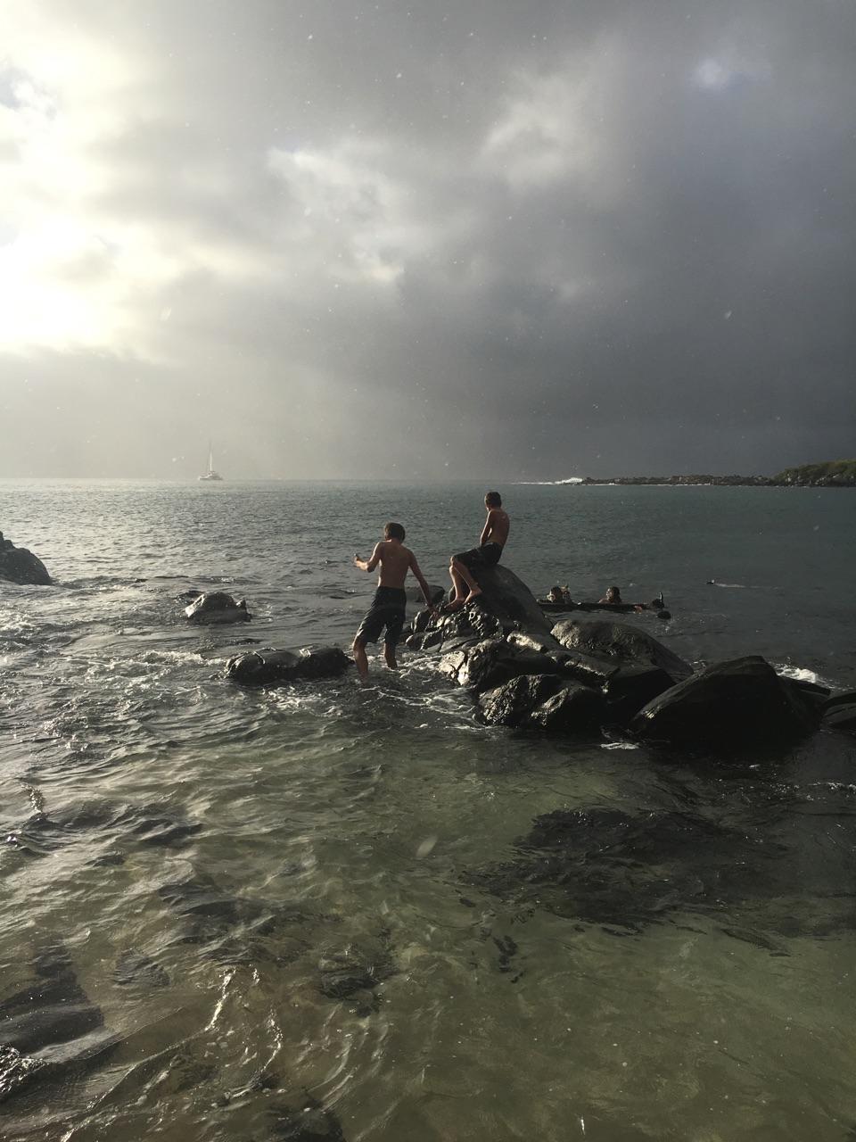 Yesterday after breakfast, it was off to the pool at the Ritz and then the beach before heading into Lahaina to pick up some small gifts for Lori’s girls at work. Then around 5pm, we were back at Merriman’s for a bit as Aleks was a featured winemaker from 6 until 8. The boys left us at our table and went down to the beach to swim and see the turtles. They found about 3 large ones right below us on the deck and hung out with them for a while. Jag put his hand above one and it popped its head out of the water right up into Jag’s hand. Around 7pm we headed home and then Lori and I took a walk to work off some of our dinner. I think we could both go a few weeks without any food.
