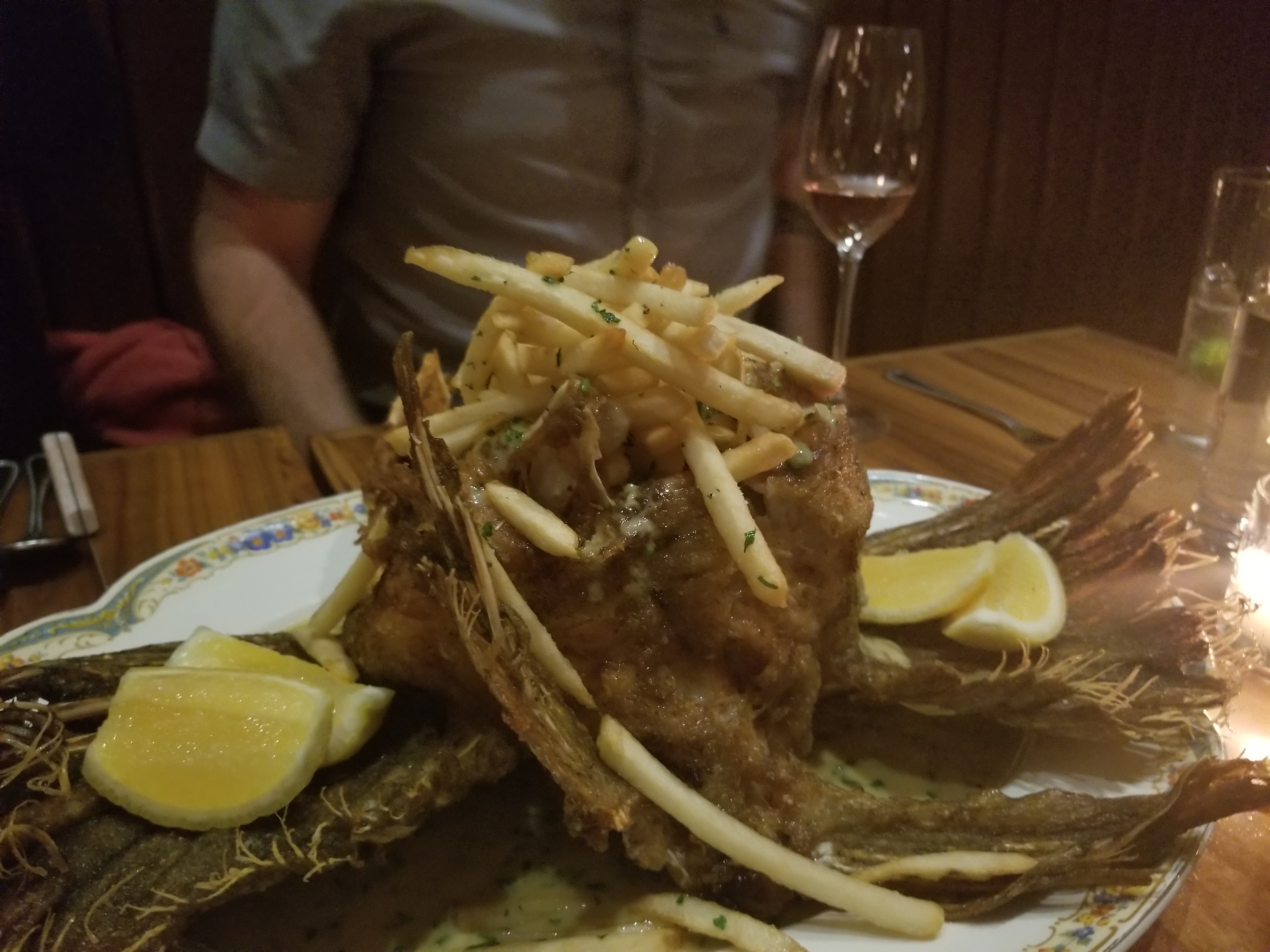 The food was great. Before our main course, the chef sent over this fresh cod collar which is basically the neck of the fish, (see below). It was great and filling. By the time our main course arrived, we were stuffed. I made it to my hotel by 9:30 and was asleep by 10 which is good, as I woke up at 2:30. I have a 5:15 flight so time to get moving. I should be back in Denver by 8:30 this morning and then head up the hill. Have a great day and GB.