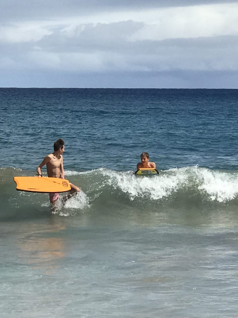 Yesterday we took the kids up to D.T. Flemming beach where they have good waves. They had a blast but did get beat up a little bit. They wanted to go to the North Shore but we knew the surf over there would be too big. I’m sure this morning there will be more ocean action.