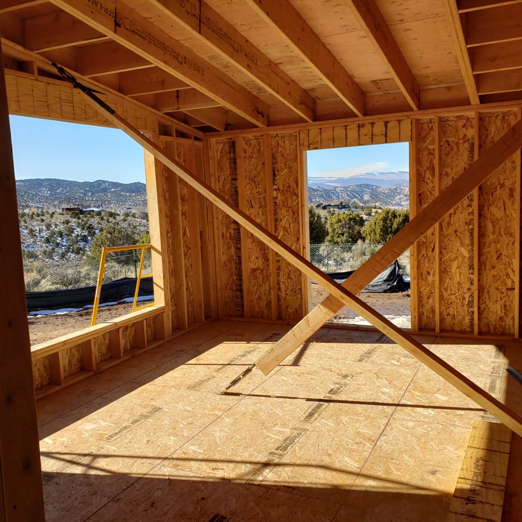 Time to go so have a good day and God Bless. Here’s a few pics of the house! Closest is our bedroom waiting on the roof, next up is a view from the dinning room up the stairs and last is Ty’s room and his great views! Enjoy!