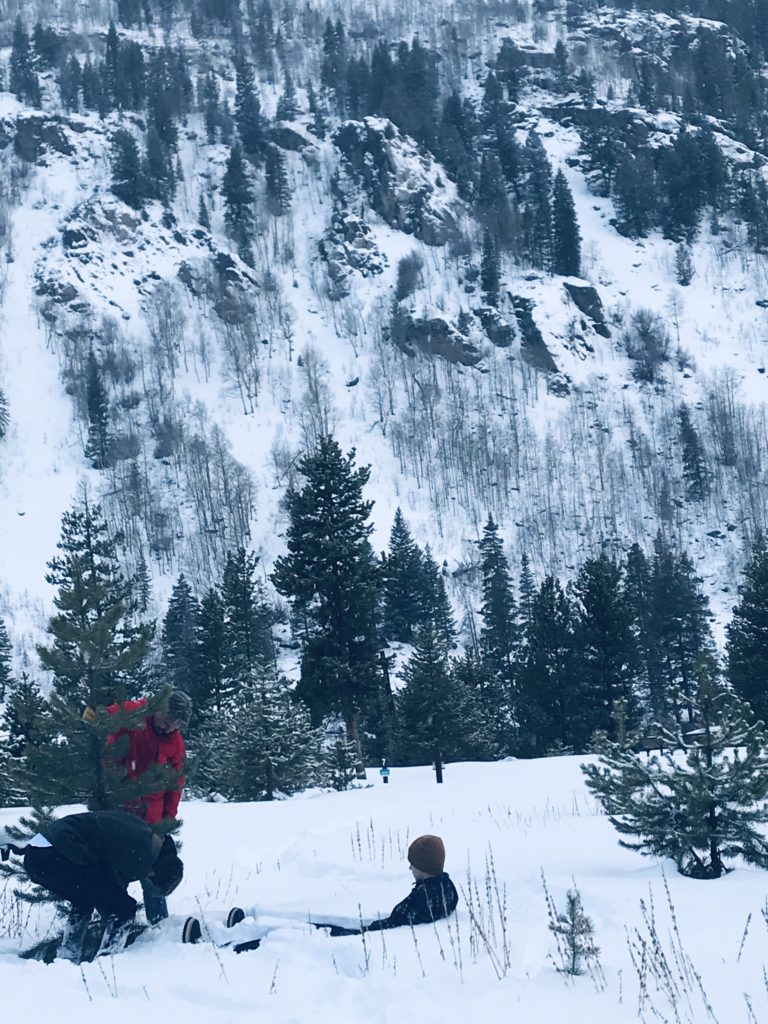 Yesterday afternoon we headed out to get our little tree. The snow was deep and we found a cute little Charlie Brown Scotch Pine that’s about the same height as Jagger. It’s small but really feels like Christmas. Lori and I were at Home Depot and thought about getting a fake one but she texted both boys and they were adamant about going and cutting one. This made us both happy as there is a Christmas Spirit after all! While trudging through waist deep snow Ty found a pan, a plate, a bucket and a half a bottle of Makers Mark Whisky buried in the snow. Not sure how he found it, maybe he stepped on something as it was buried deep. Must have been from someone who was camping or something.