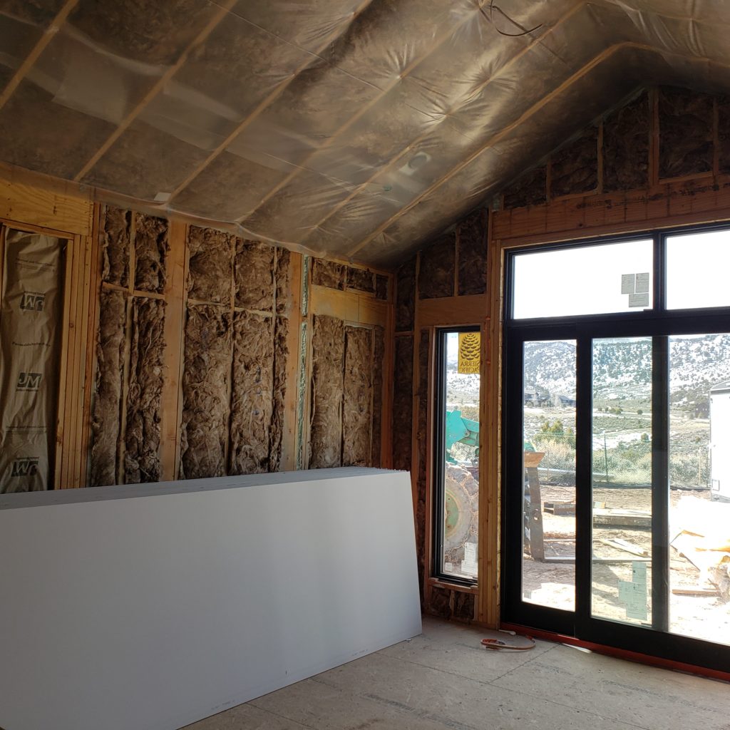 I was down at the house and lots of guys were working away. Stone masons, dry wall guys, and other workers all going strong. A few pictures are below. We had insulation sprayed in and then bat insulation put on top of that for a super efficient house that will cost less to heat and keep cool. Exciting!