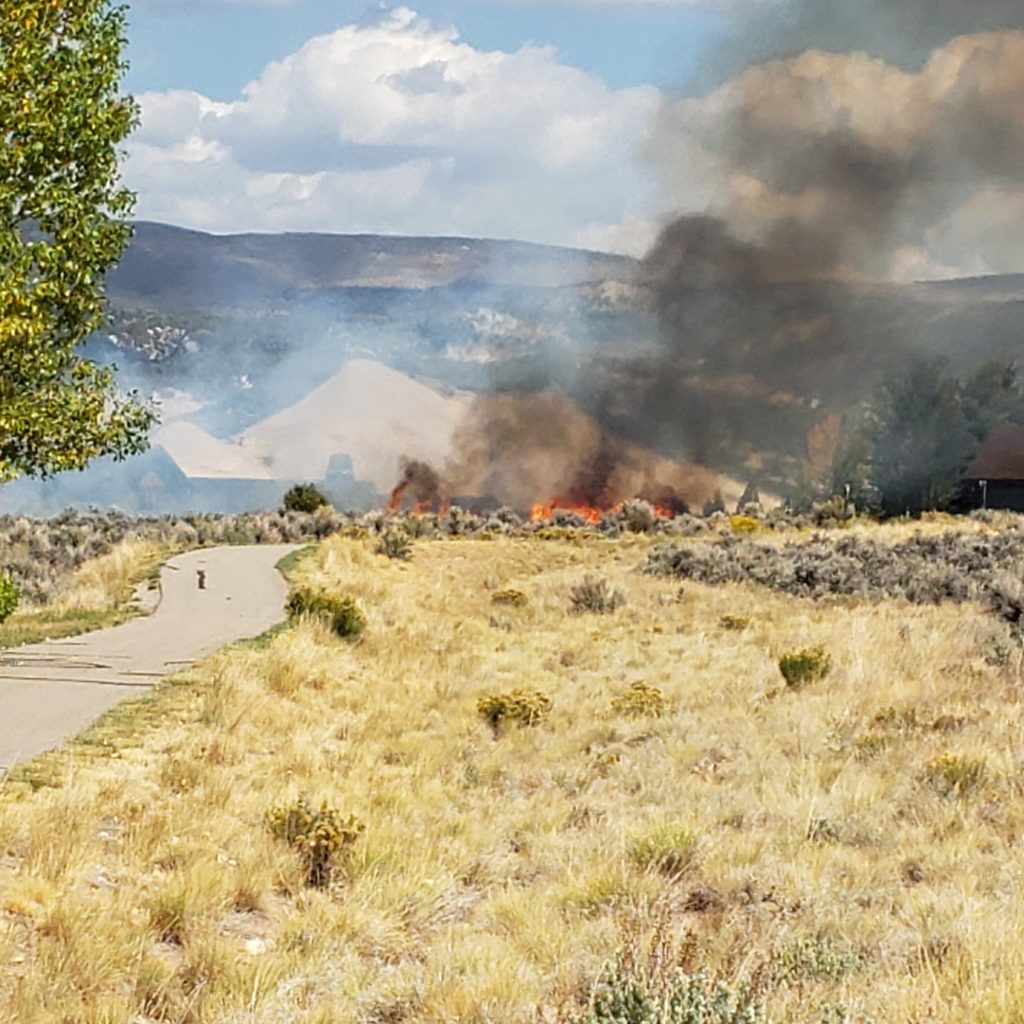 Was looking out the window yesterday and saw what looked like smoke. In a Nano second I knew I was right. I called Ty down and had him run over closer to the fire to verify it was not some neighbor burning trash. It wasn’t. I dialed 911 and let them know and about 5 minutes later the firefighters started to show up. It was a long 5 minutes. The fire burned only about an acre but could have been much worse. Lucky I was home. It was a tractor from the county with a mower attachment that created a spark and caused the fire. I saw it all happen. It took about 3 hours for it to be cleaned up. They cut down every sage brush bush there was until nothing was left but a lot of black dirt. Scary.