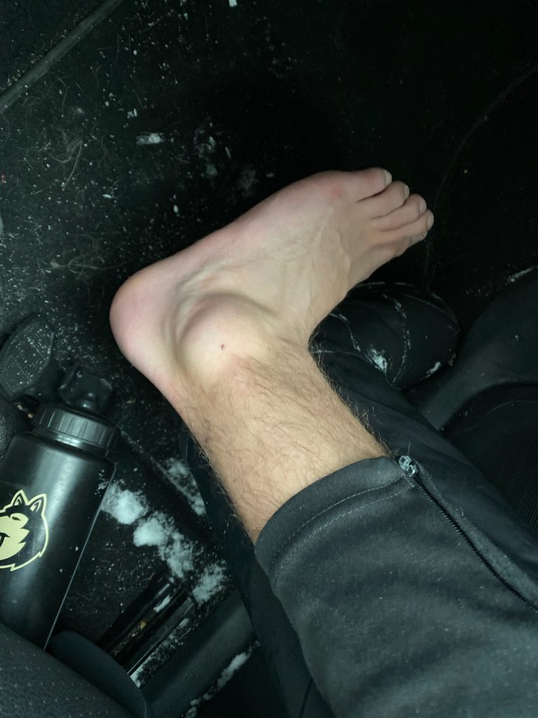 I headed downtown towards Whole Foods and a couple of specialty grocery stores. While driving Ty called. Apparently a skier ran into him and took off and he hurt his ankle. Lori’s plane was about to take off so I told him to send me a picture. Check it out,