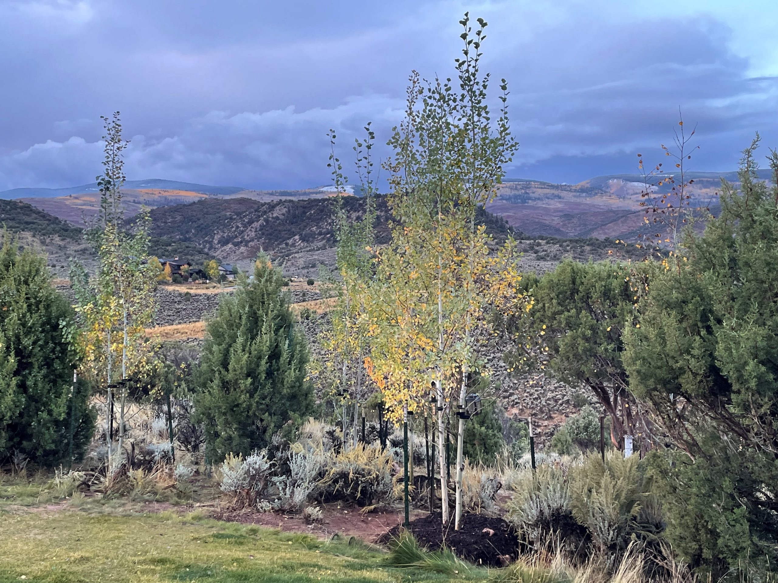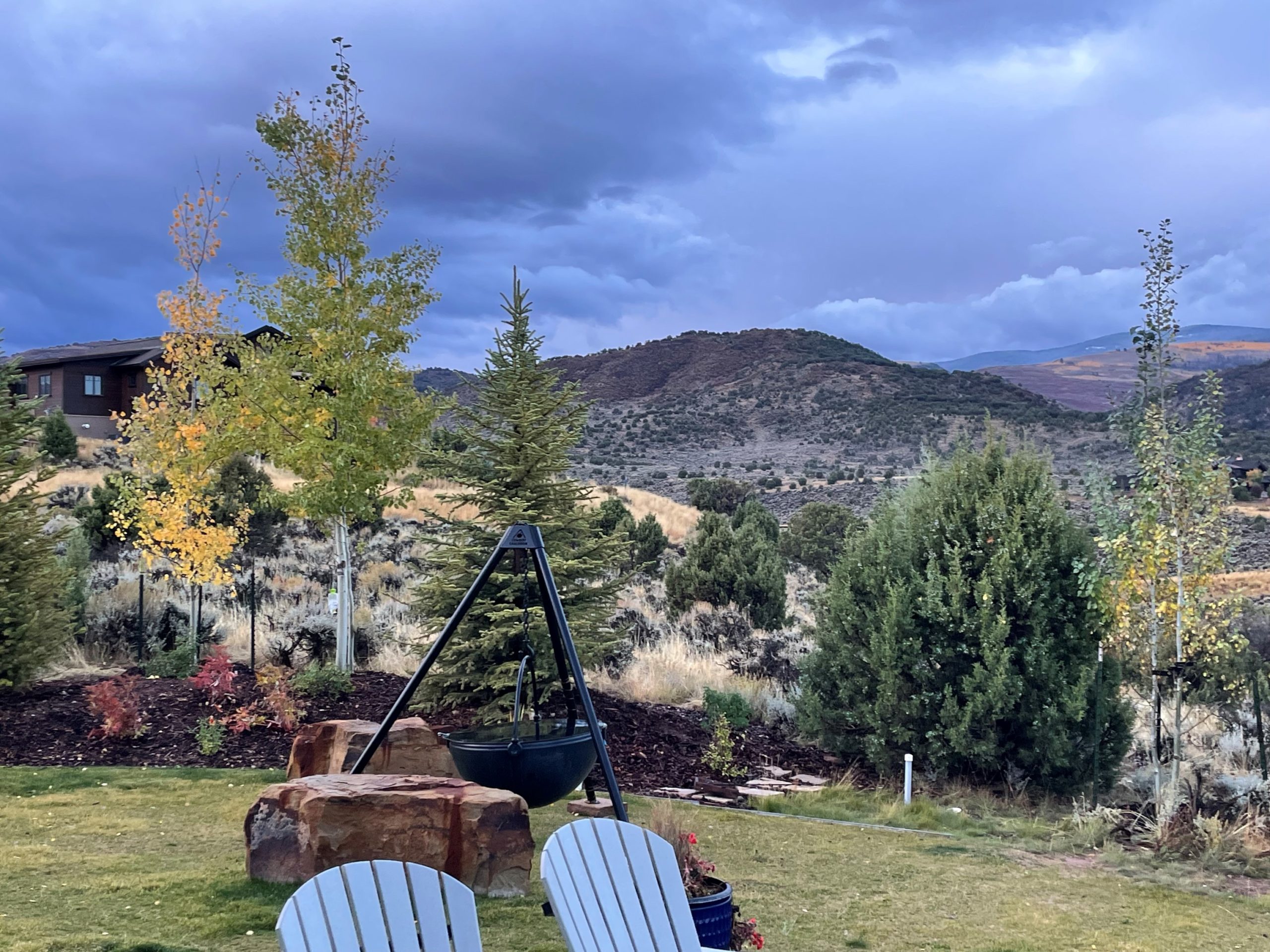 Here it comes, Fall. Yesterday it was nice in the morning, then the rain came with lower temperatures and during the night, snow came down up high on the top of the mountains. We don’t have any at the house, but you can see it out the windows.