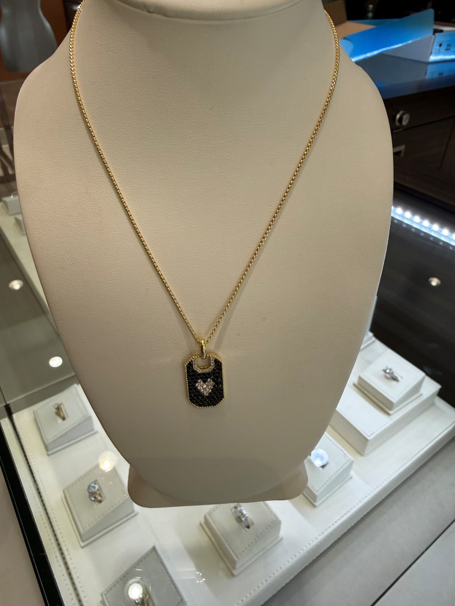Lori’s new black and white diamond dog tag necklace! The picture doesn’t do it justice.