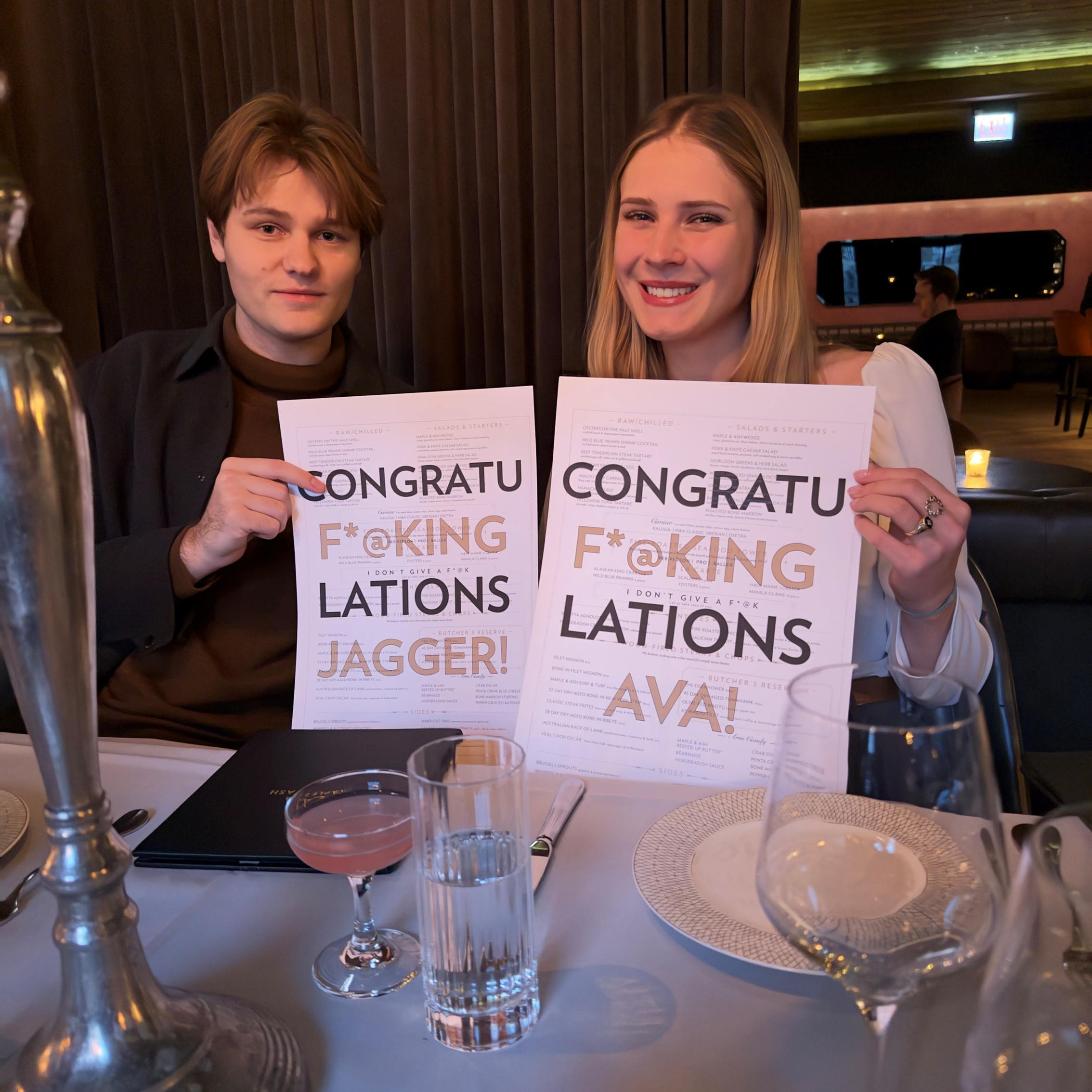 We then grabbed a light lunch at the hotel before taking an Uber over to their neighborhood. We walked around there for a couple hours and then headed back to get ready for dinner. The kids met us at 4:50 and I had the hotel driver take us to Maple and Ash, one of the top steakhouses in town. The place went all out for us as I set up a little celebration. Check out the picture below, they made these up for all four of us. The lighting was all candlelight, so the pic is not that great, but it was so much fun, and again the food was great. Jag really enjoyed it and said it was epic! Afterwards we walked back to the hotel, which was only a couple of blocks, but the wind coming off Lake Michigan, is really cold.